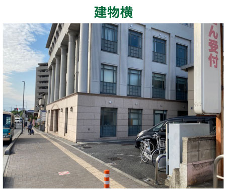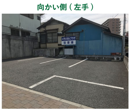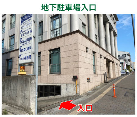 医院建物の地下駐車場(6台)、医院建物横のサト薬局前(2台)、道路を挟んで向かい側(13台)合計21台の無料駐車場があります。