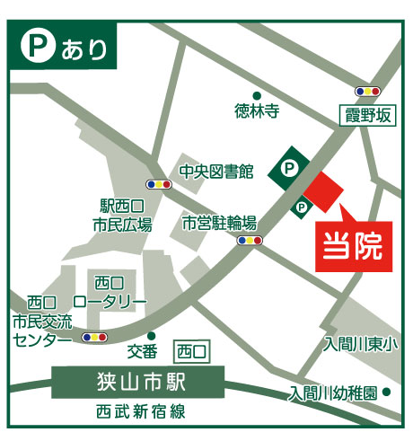 〒350-1305埼玉県狭山市入間川2-5-7 メディカルプラザ1F TEL:04-2952-2064