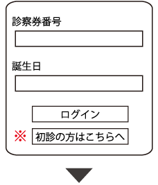 診察券をお持ちの方は診察券番号と誕生日(4ケタ)を入力し、 ログインして下さい。